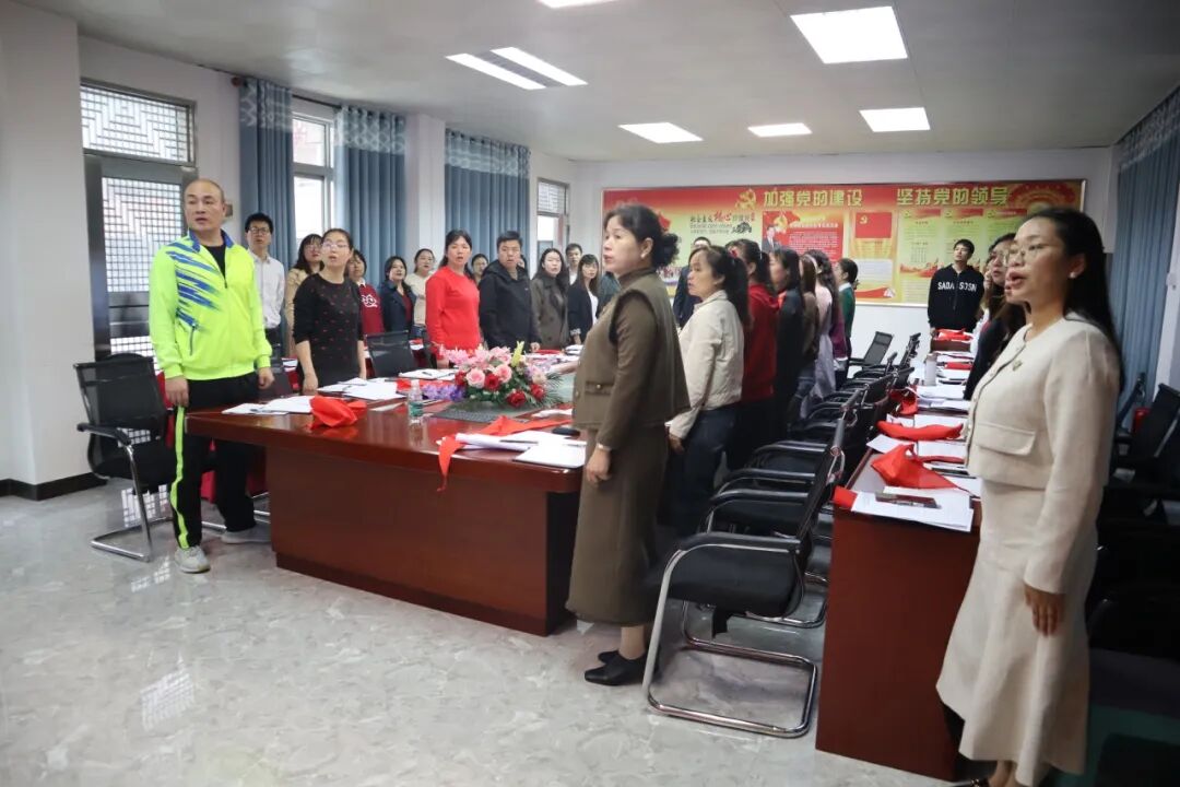凝心聚力,携手并进。全体老师在少先队辅导员郑老师的带领下,学习了红领巾的正确佩戴和正确敬队礼;唱响了国歌和少先队队歌;本次会议再次重点学习了新都盛教育集团最新推行的“文明班级达标评选细则”。