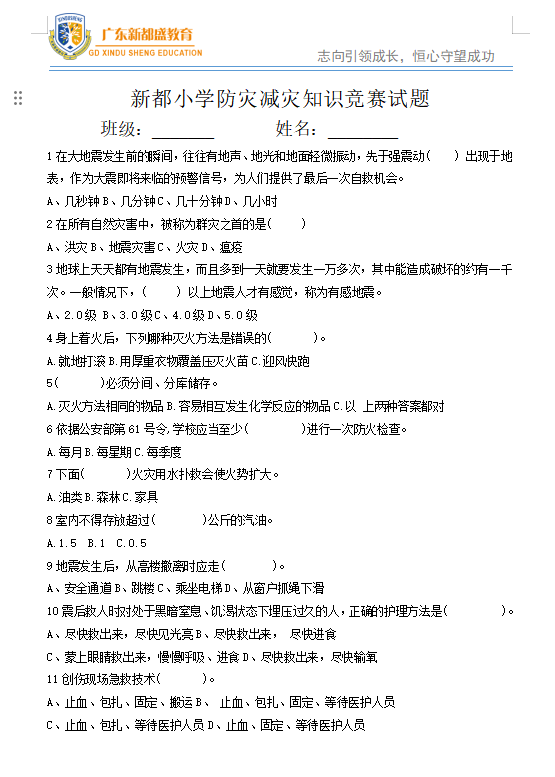 防灾减灾知识竞赛,不仅增强了同学们的安全意识,同时提高了自护自救的能力。