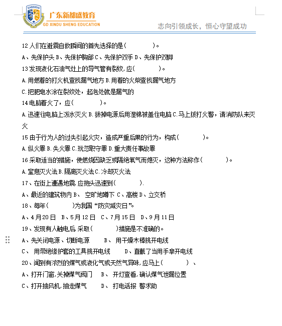 三、防灾减灾知识竞赛试题