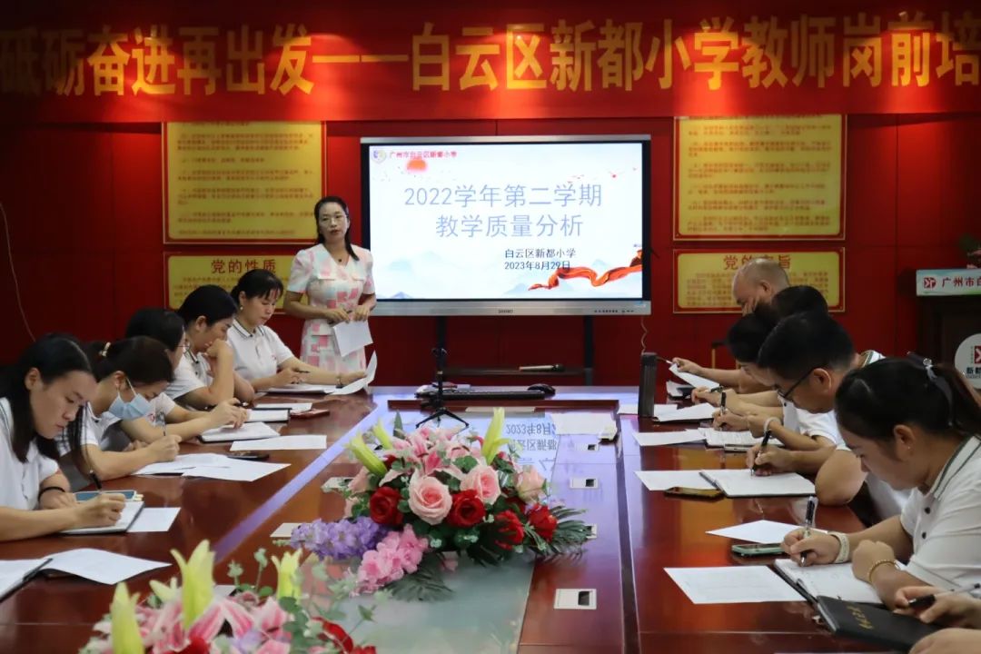教导处主任钟尧珊进行“2022学年度第二学期期末教学质量分析”,利用数据、图表量化对各年级教学成果进行详细分析,并提出具体要求,要求全体教师做到“三勤”:“勤”耕课堂、“勤”练内功、“勤”于反思。