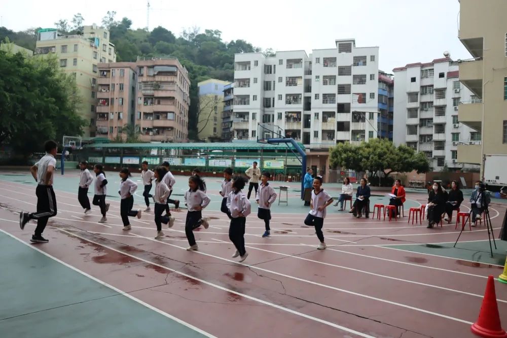 一声哨音,把我们从美术室带到了操场,张振坤老师利用课间时间已整理好体育器材。看那整齐的队伍,就知道学生有多期待。在常规内容布置后,张老师带领学生伴随音乐从热身操到示范动作,从游戏环节再到最后的放松操环节,训练中,同学们都积极参与。