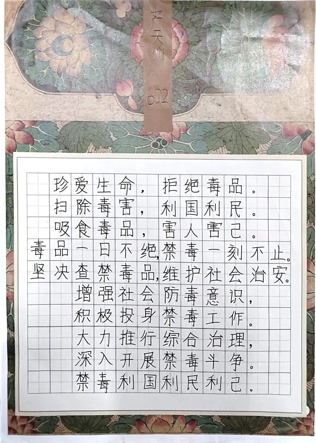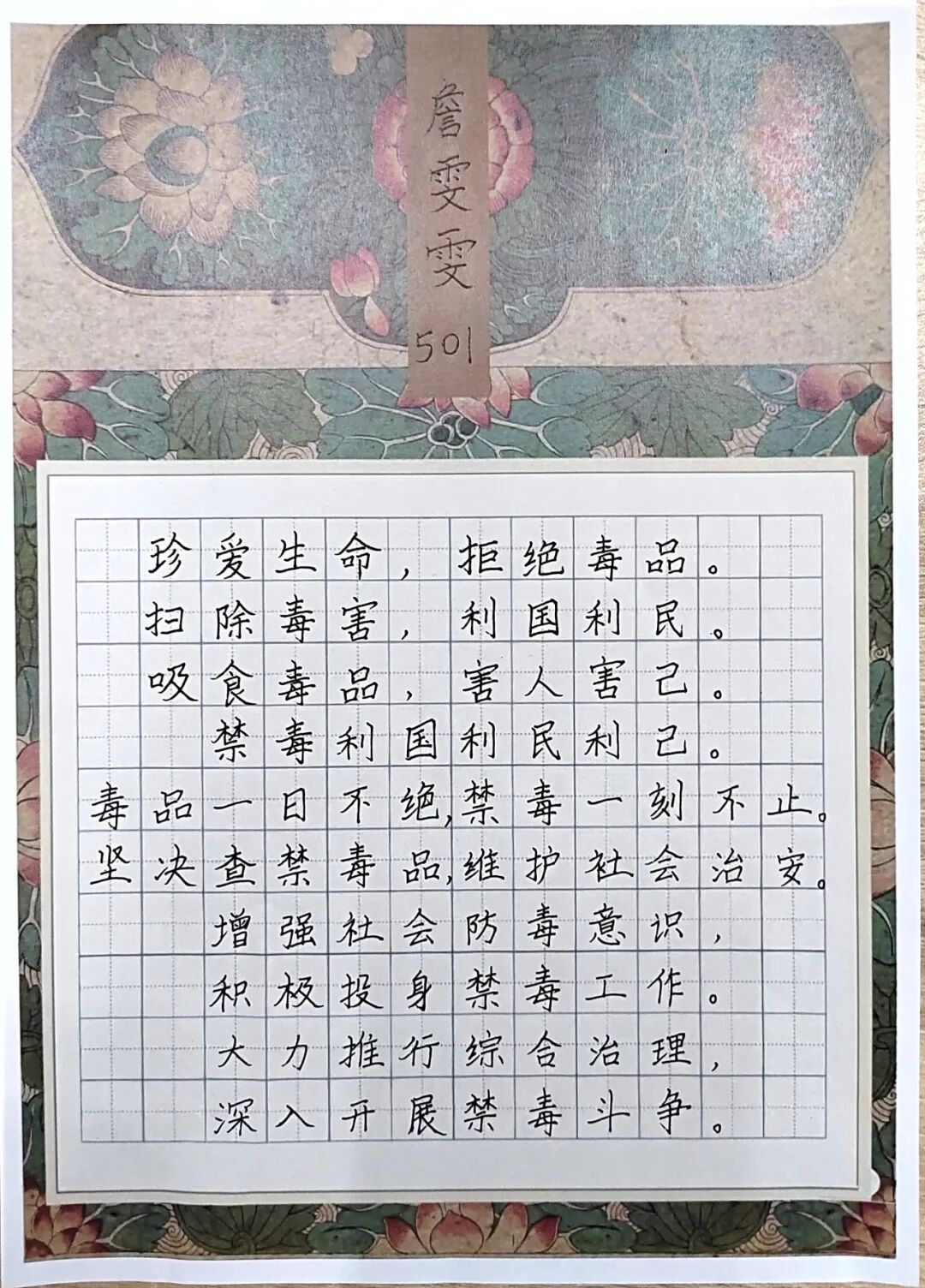为大力开展禁毒宣传和毒品预防教育工作,努力营造浓厚的校园文化氛围,充分展示我校学生的才华,践行禁毒教育从青少年抓起的指导思想,我校面向全体师生组织开展一次校园禁毒主题书法作品征集活动。