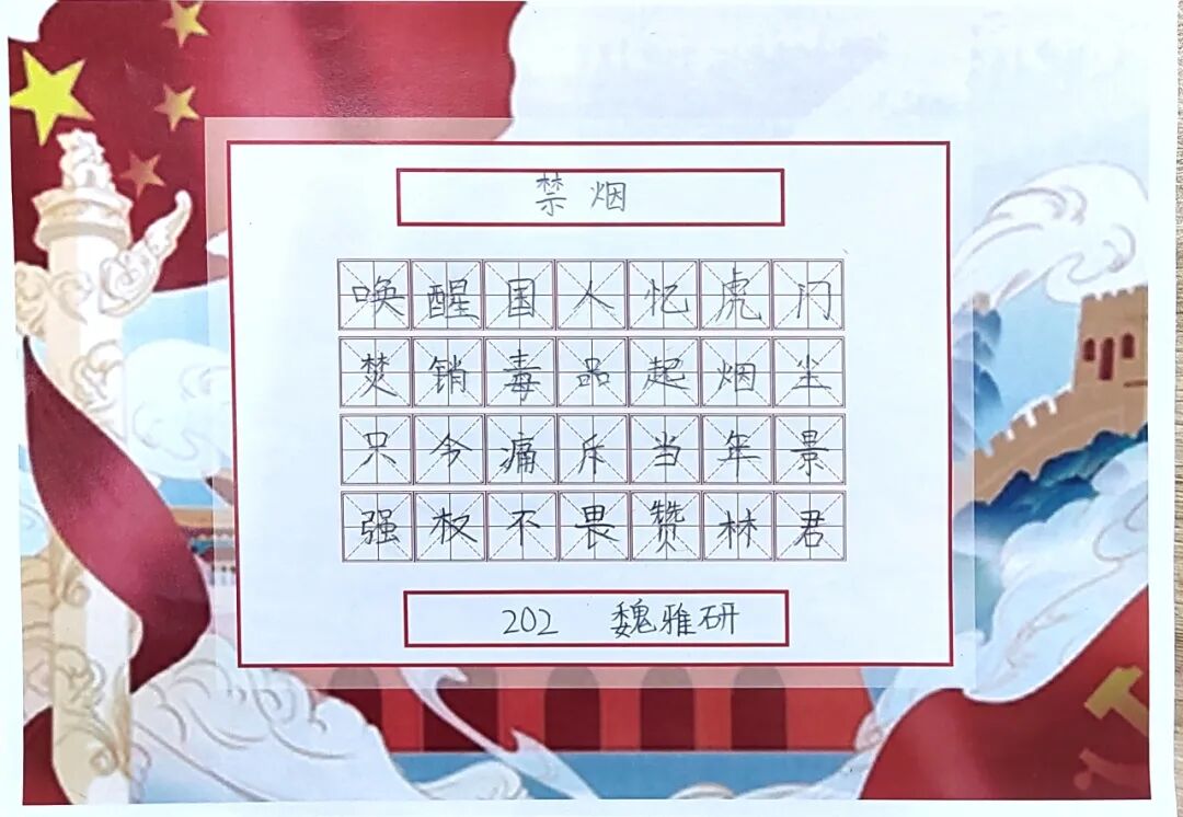 一撇一捺书写的是百年风华,一笔一画勾勒的是千秋伟业。希望通过这次禁毒书法比赛,让更多的学生对书法产生浓厚的兴趣,在书写中展现出自信与才华,也让更多学生增强禁毒、识毒、防毒、拒毒能力,以健康的体魄和心态迎接未来。