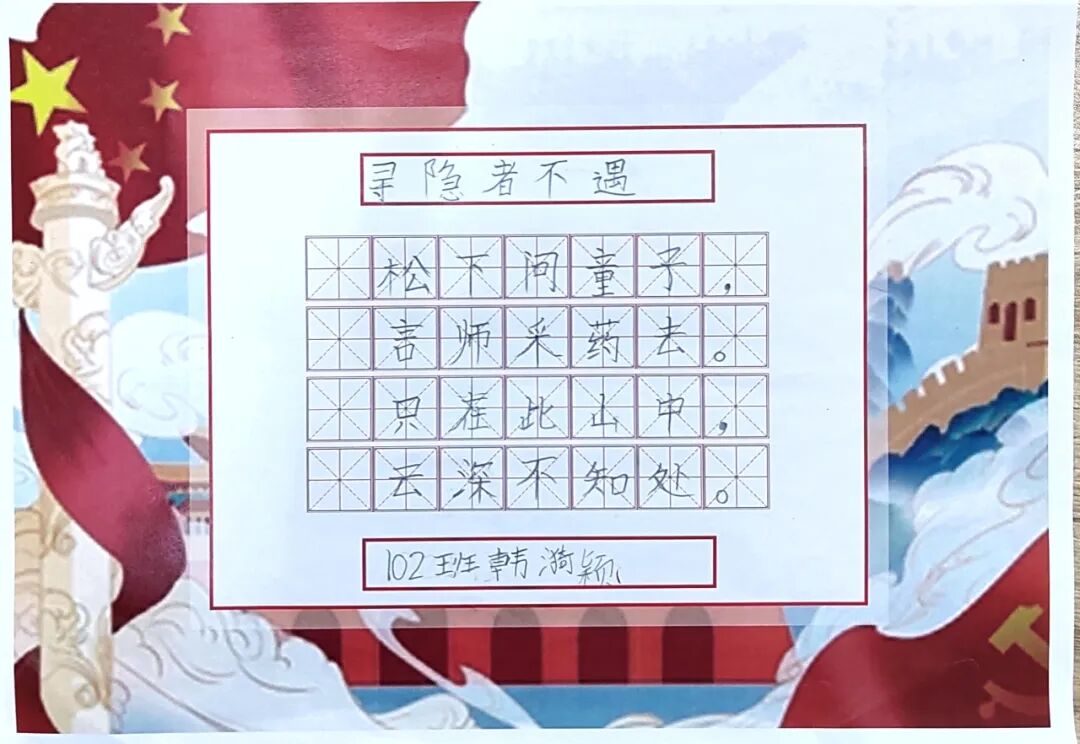 硬笔组的学生作品令人赏心悦目,字体结构端正大方,笔顺起落有度,遒劲有力,气韵生动。这不仅让我们感受到了书法的韵味和美感,也激发了我们热爱传统文化的热情。