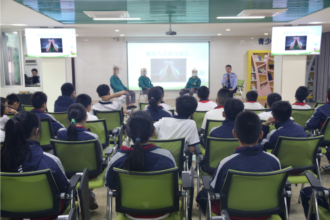 11月22日白云区京溪街组织我校32名12周岁以上学生前往广东省第三强制戒毒所青少年法治教育基地参观学习,学生们通过展板中的图文了解我国禁毒的历史,知晓毒品的分类和特性,一张张真实的图片还原毒品对个人、家庭、社会、国家的深切危害。于警官用真实案例及引导戒毒学员现身说法等方式,使学生更加直接地认识到毒品对人的身体、精神等各方面的巨大危害,树牢大家的防毒拒毒意识。