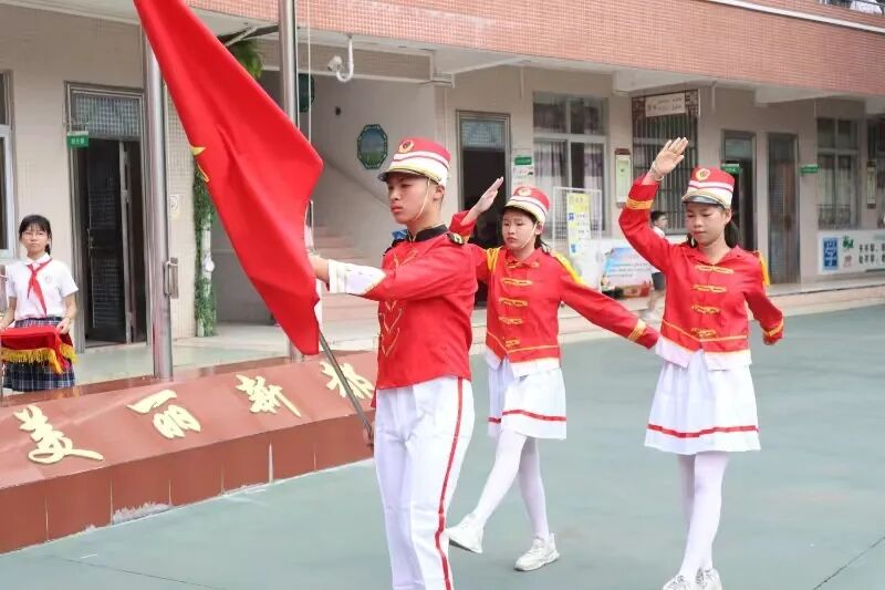 我们的心与队旗一同退场,但是我们的精神和责任永远在场。队旗飘飘,融入我们的生命和血液;星星火炬,点燃信念的火,照亮心灵的灯。仪式结束,队员们留下了他们成长的印记。