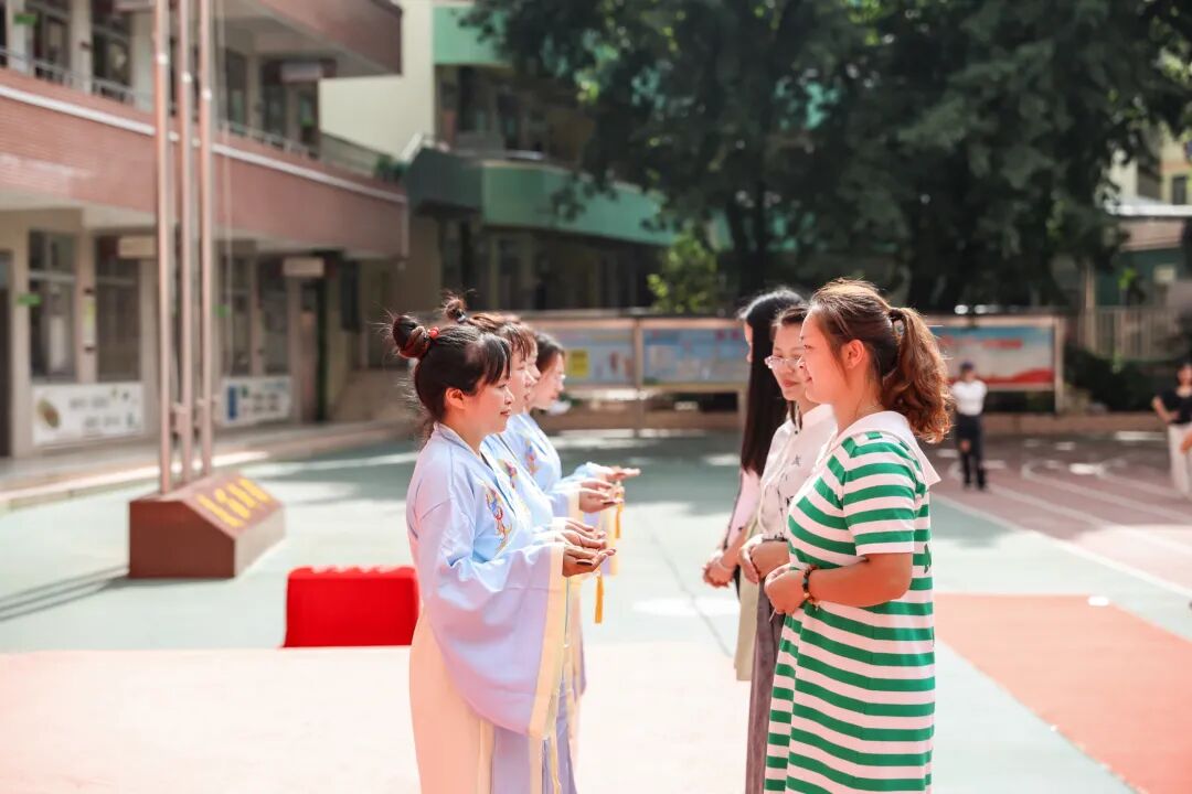 启蒙老师,诲人不倦。育我成长,如父似母。学子们应面向师长,行三拜之礼,表达最诚挚的敬意!