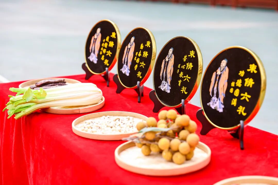 为孔子先师进献“束脩六礼”,以表尊敬。