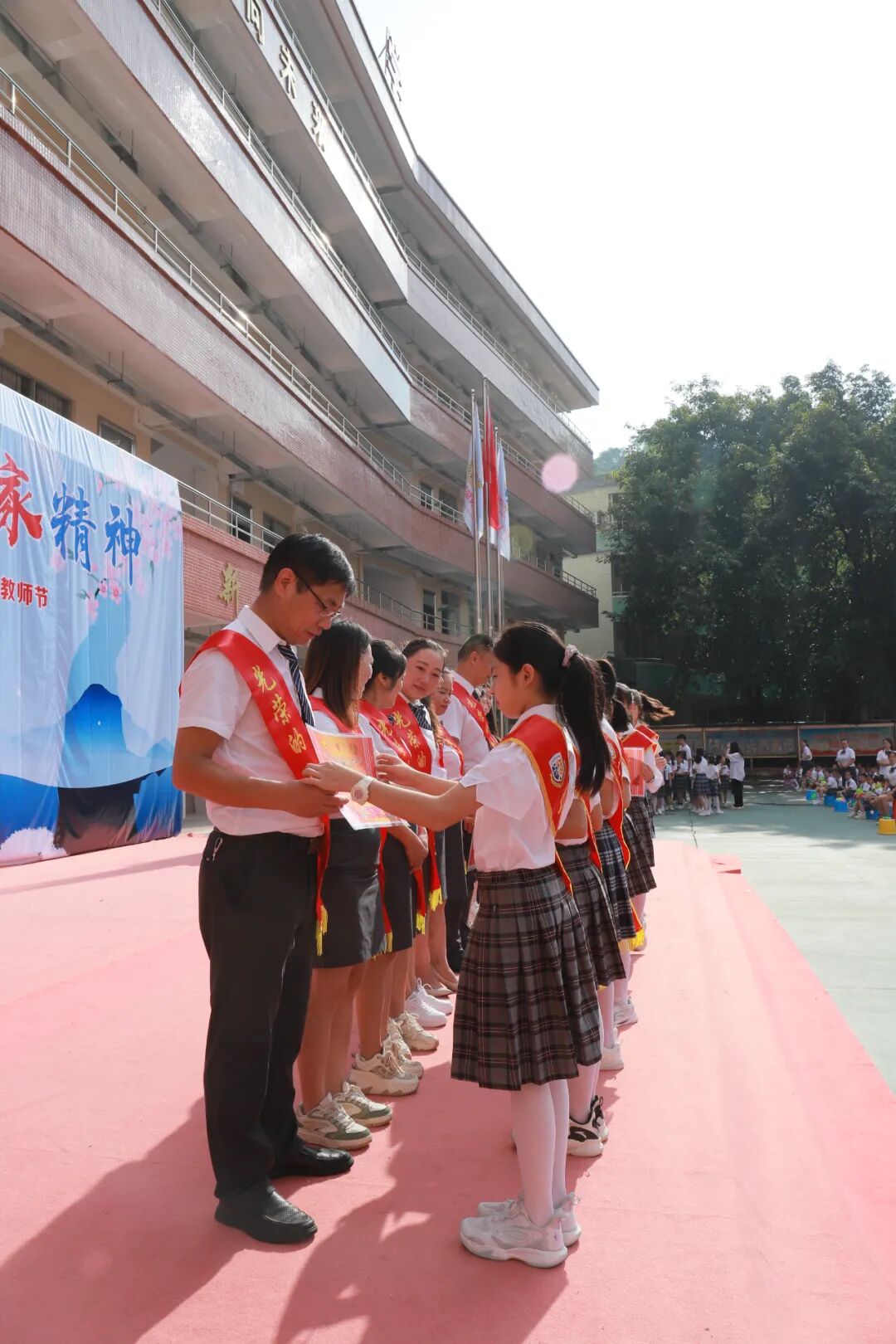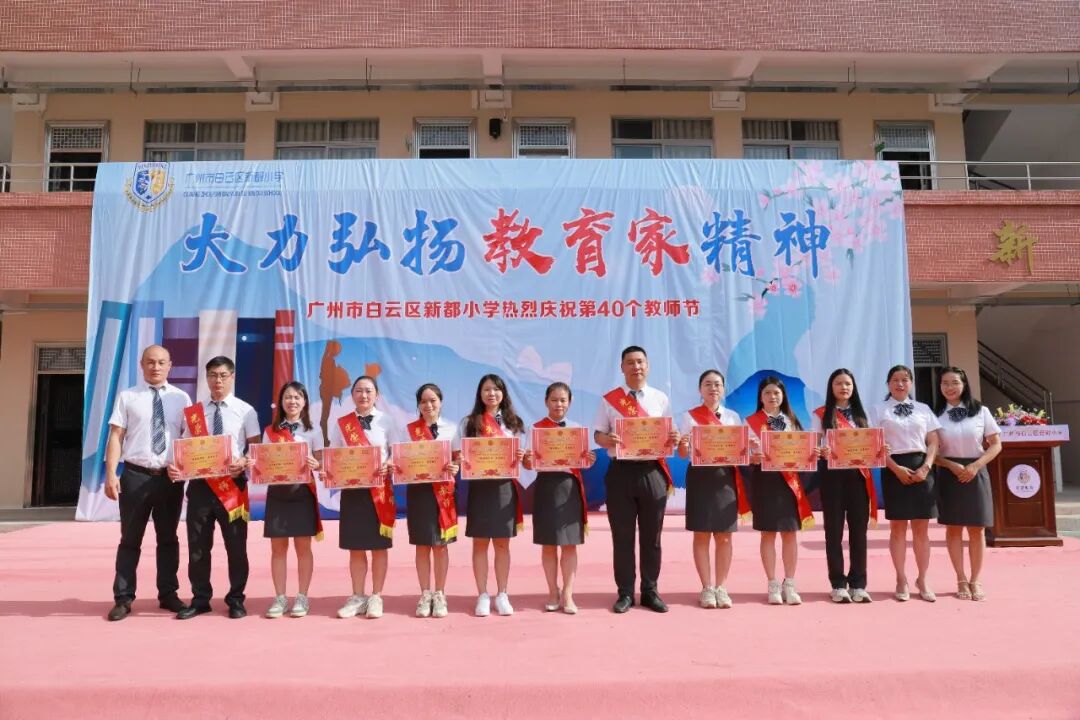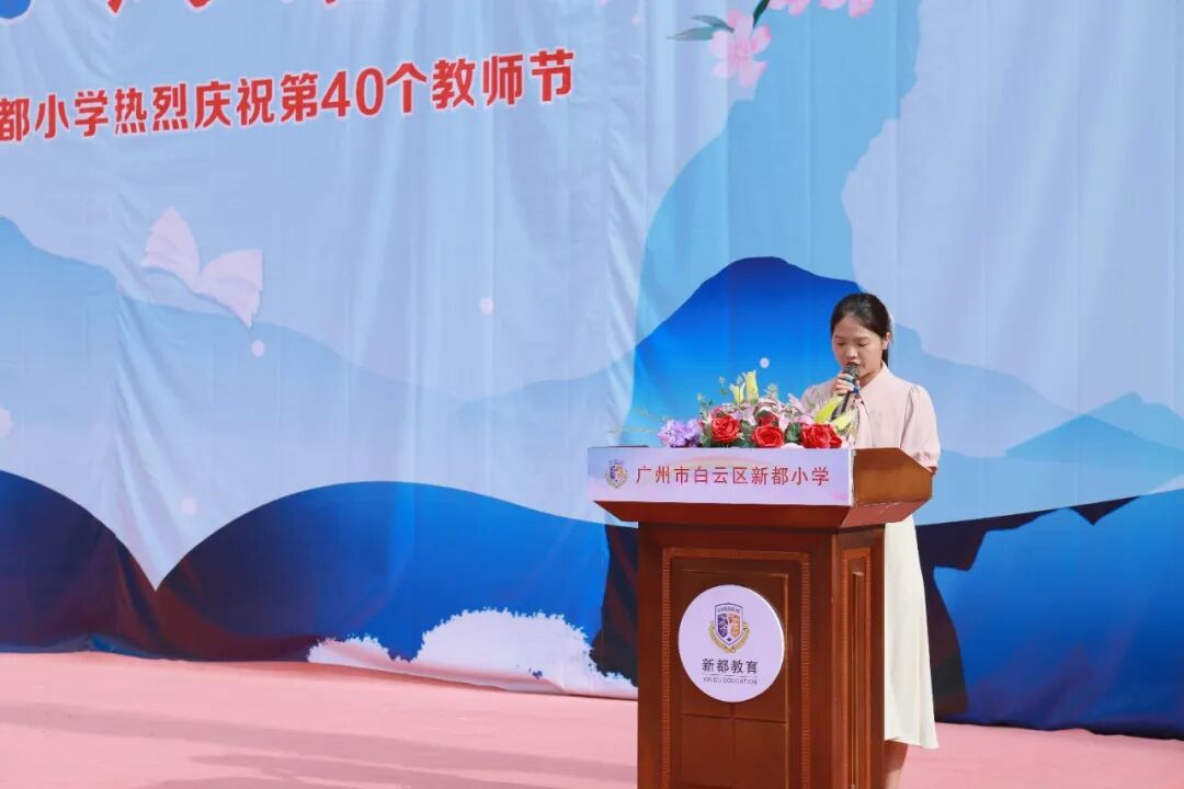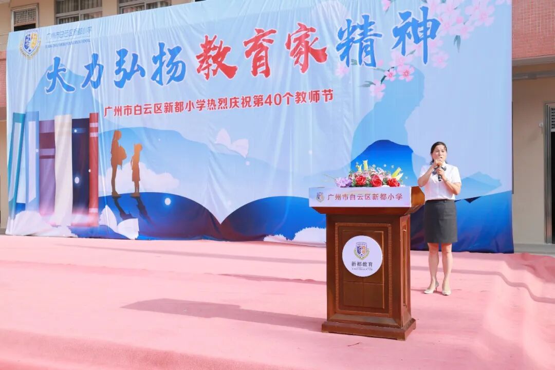 此次教师节庆祝活动,是对每一位教育工作者躬耕教坛的崇高致敬,更是新都小学教育人砥砺前行的嘹亮号角。今天,在教育这条路上我们全体老师有幸携手,坚定前行,用心用情,书写立德树人的壮美篇章;明天,面对新时代的机遇和挑战,我们要继续发扬教育家精神,涵养师德,潜心育人,为教育事业的高质量发展,为教育强国建设,挺膺担当,再立新功!