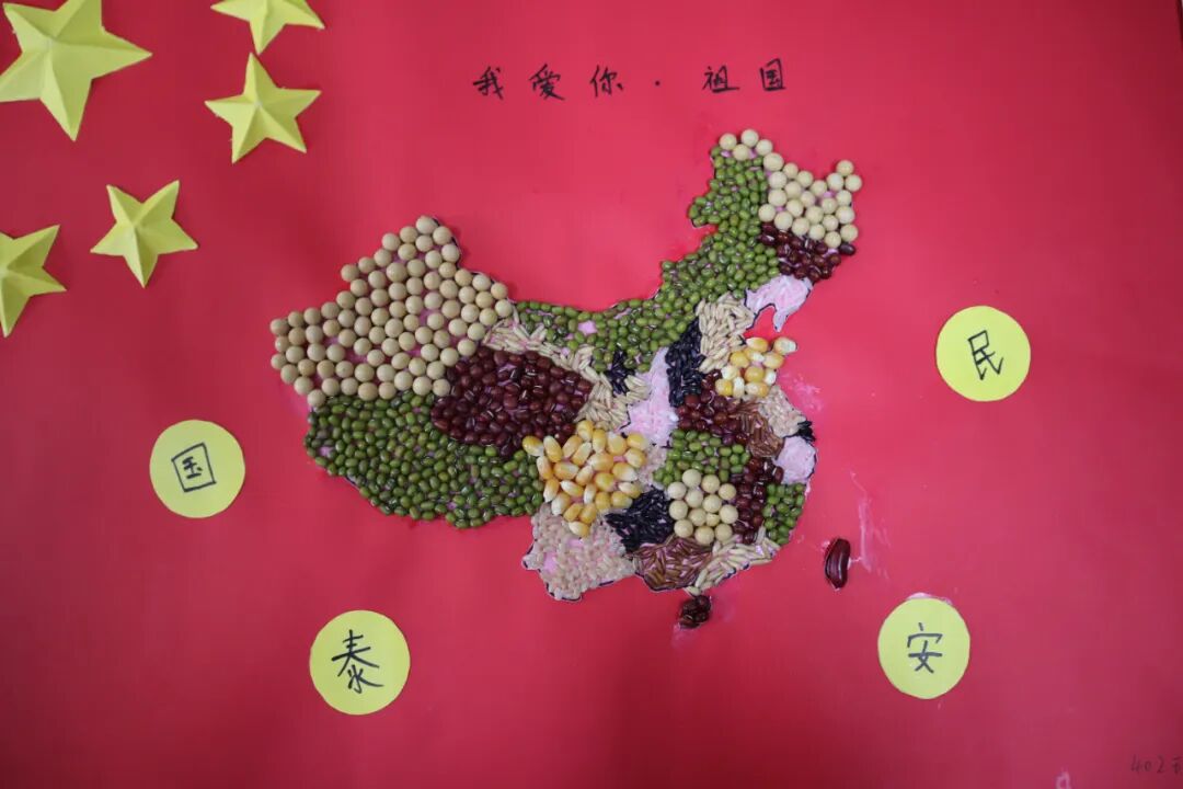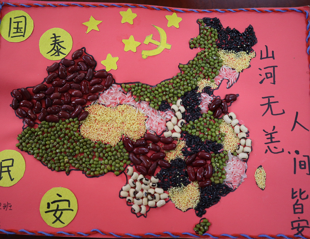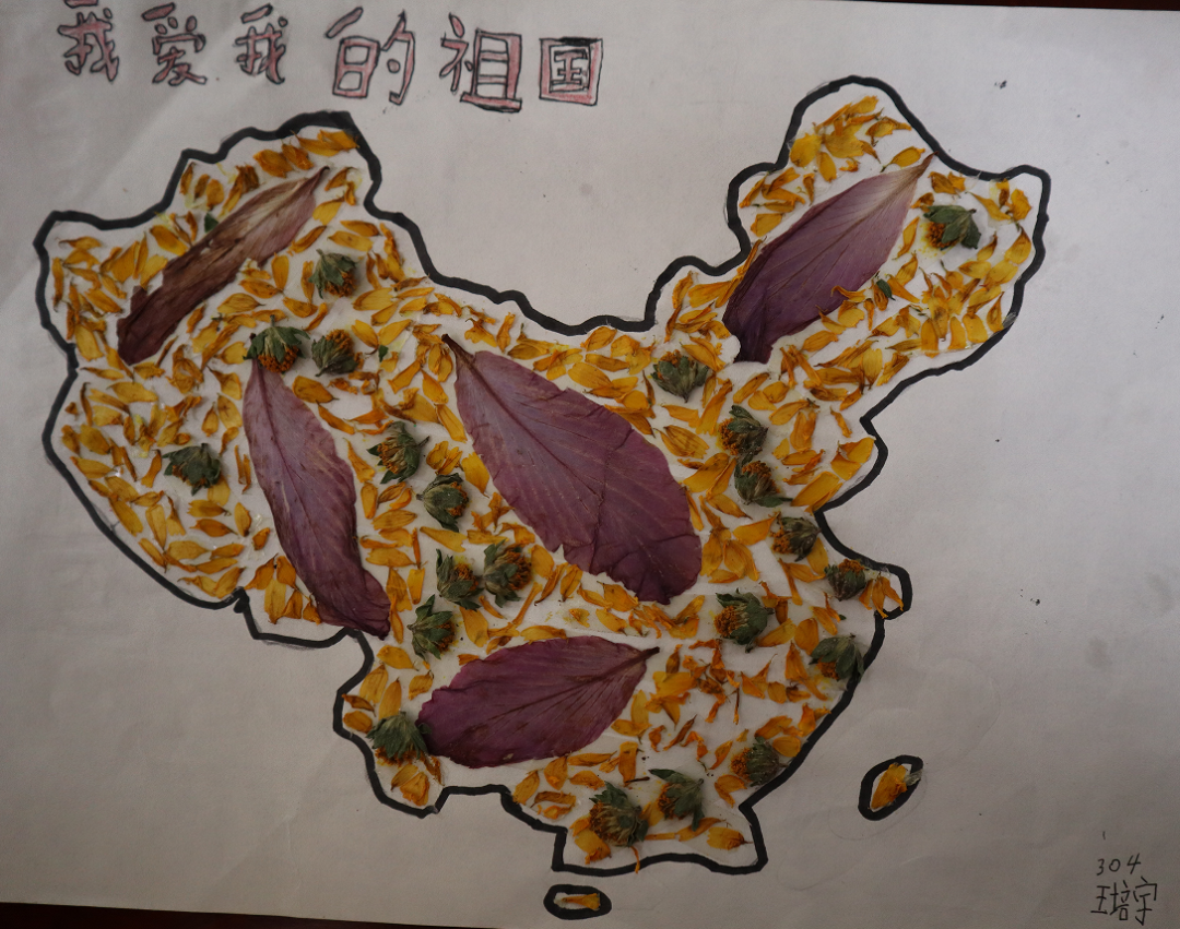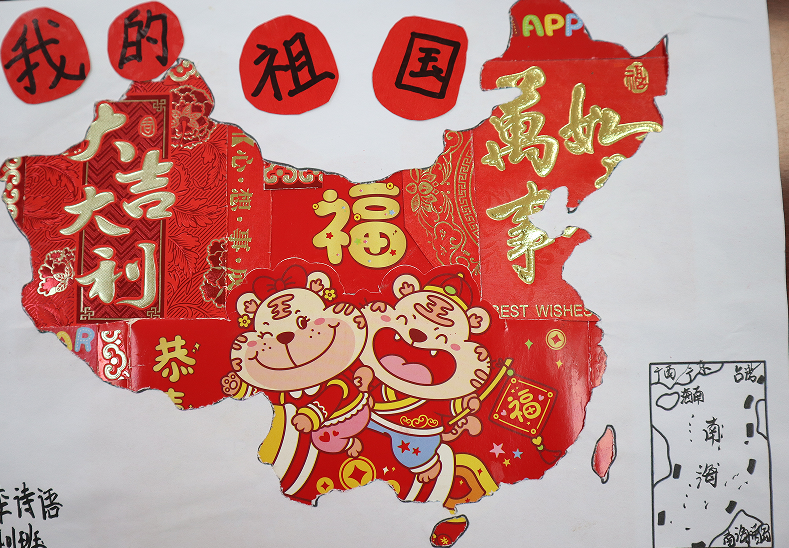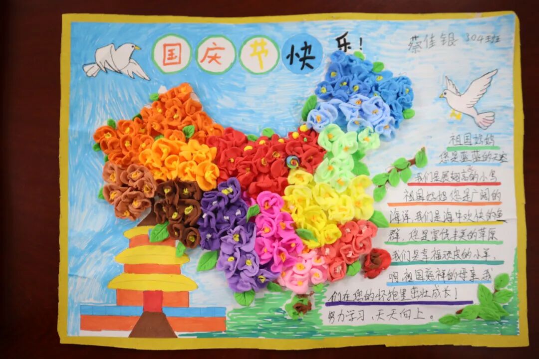 “我们生在红旗下,长在春风里,目光所致皆华夏,五星闪耀皆信仰,仰望长空,历史星光仍然灿烂。”黄黄的星,红红的旗,国旗飘在我心间。三、四年级中队以手工制作“五星红旗DIY、中国地图DIY”表达着对祖国妈妈的祝福。
