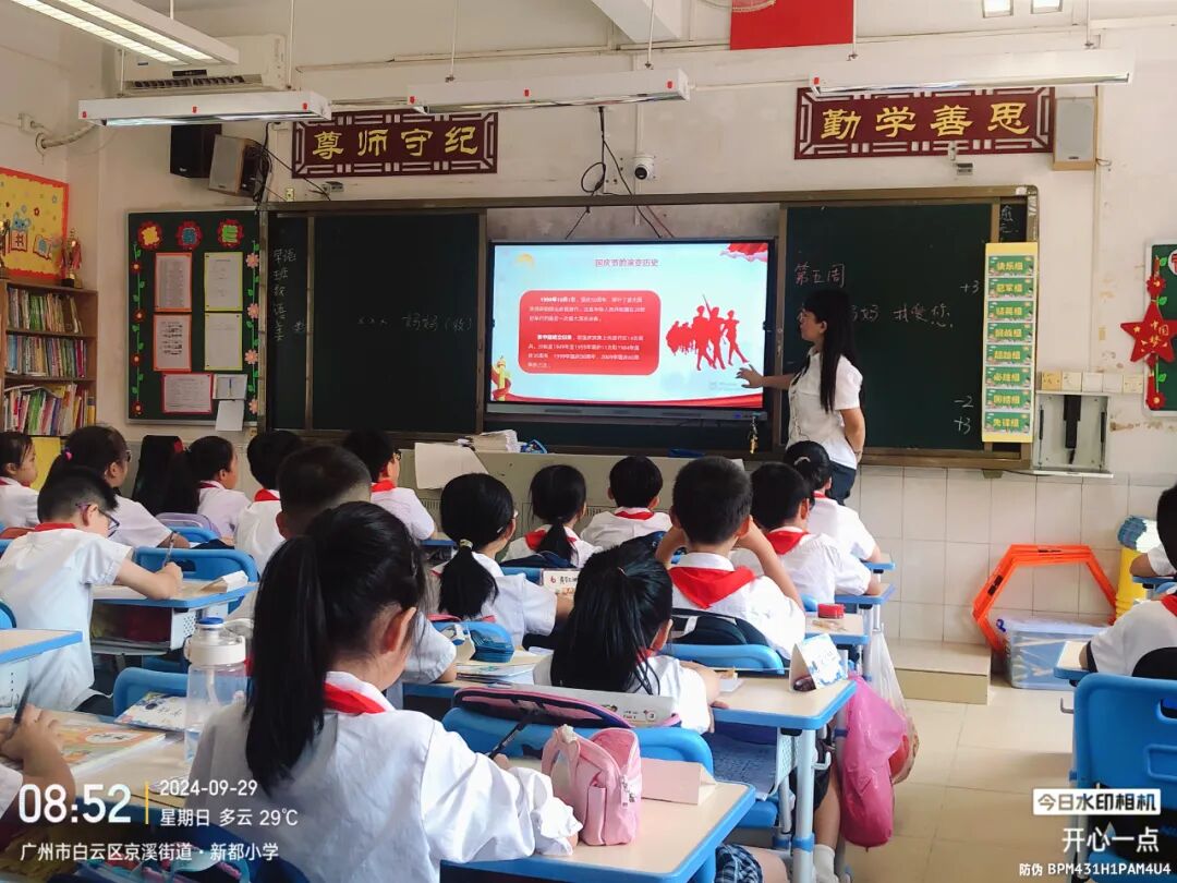 辉煌璀璨七十五,盛世华章耀神州;砥砺奋进新时代,同心共筑中国梦。为深入贯彻党的二十大和二十届三中全会精神,全面落实立德树人根本任务。广州市白云区新都小学开展了以“七十五载逢盛世,同心共筑谱华章”喜迎国庆系列活动,旨在弘扬爱国主义精神,增强学生的民族自豪感和爱国热情。