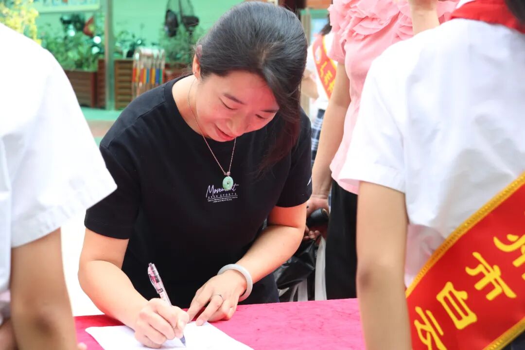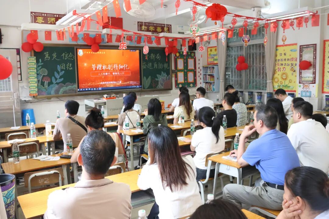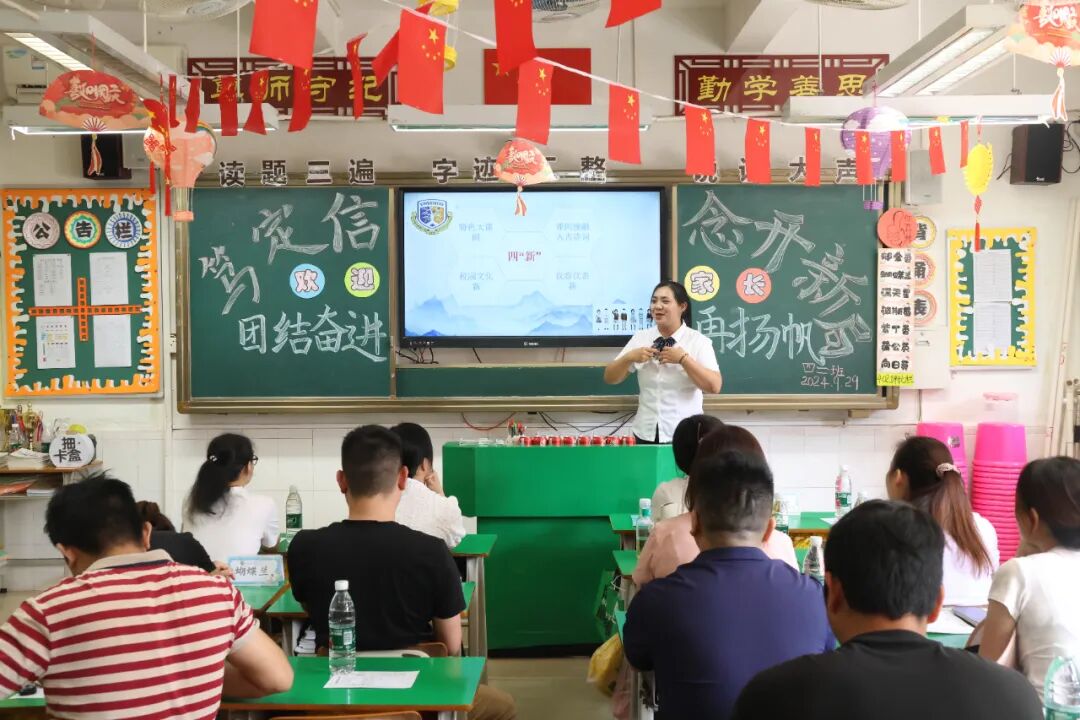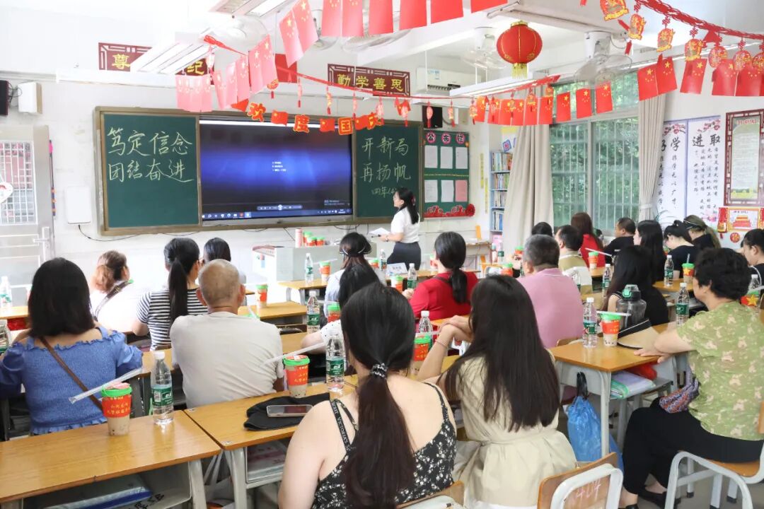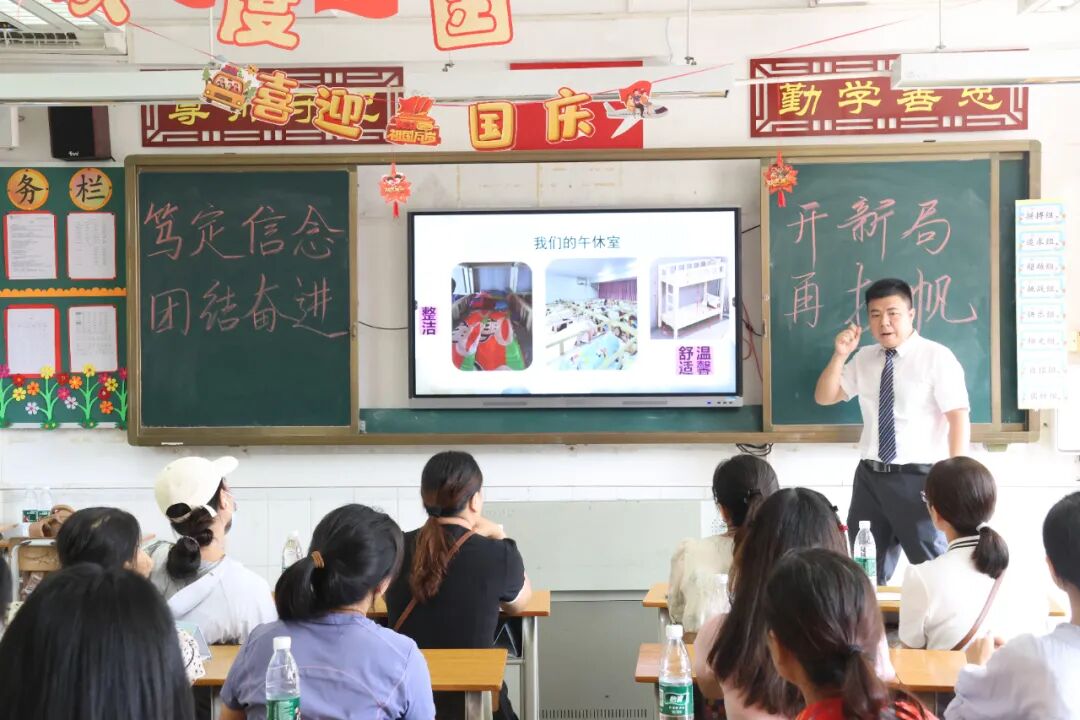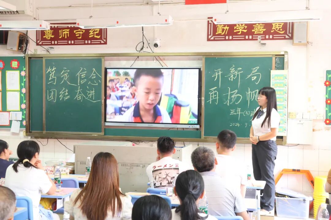 谭校播放视频回看我们过去一学年的部分工作情况,在观看视频的过程中,我们能够清晰地回忆起过去一学年里所经历的点点滴滴,那些忙碌的日子、取得的成就以及面临的挑战都一一呈现在眼前。谭校强调教育不仅是知识的传授,更是心灵的滋养。家长和老师们用心去爱,用智慧去育,为孩子们创造了一个温馨而有爱的成长环境。同时学校也优化了办学条件,本学期硬件设施在不断完善,我们的校门口和教室外墙都焕然一新,走廊扶手也加高,孩子们更安全。我们在接下来的工作中一定会不断总结经验,不断完善自我,努力做到“让每一位学生满意,让每一位家长放心”。