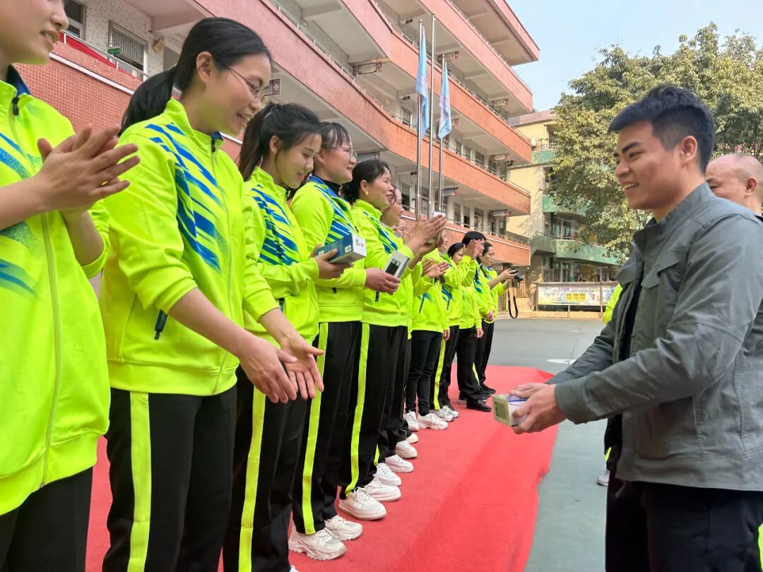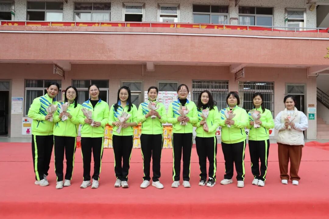 最美春光不如你,桃花灼灼不及卿。全校男教师为女神们送上了美丽而精致的鲜花。