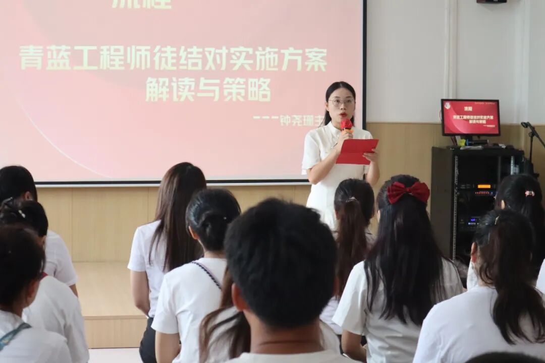 学校教导处钟主任宣读了“青蓝工程”师徒结对实施方案,强调了师徒结对的重要性,明确师徒双方的责任和义务。