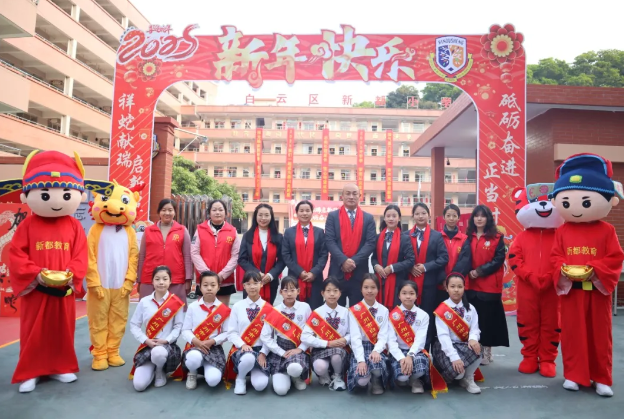 2025年2月13日,广州市白云区新都小学迎来了新学期的第一天。清晨,学校领导和老师们在校门口热情地迎接每一位返校的学生。